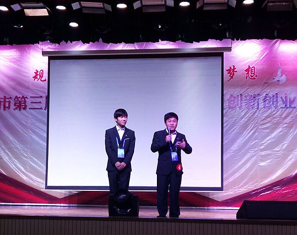 決賽現(xiàn)場,王浩哲代表他的團(tuán)隊(duì)通過精美的PPT和視頻,展示了安卓ROM分發(fā)與推廣項(xiàng)目免流量上網(wǎng)頁、免流量聽歌看MV、后期支持免流量看電影;ROM的年輕用戶送“扶老人險”,讓您敢于做好事;提升云服務(wù)驗(yàn)證等級讓您使用更安全;雙微信支持讓您使用更便捷等諸多特性與功能,贏得了評委的特別青睞和一致好評。評委組認(rèn)為這兩位同學(xué)創(chuàng)新思維獨(dú)特,項(xiàng)目創(chuàng)意新穎,充分體現(xiàn)了“互聯(lián)網(wǎng)+”時代的創(chuàng)業(yè)特征,具有較高的實(shí)用性和市場推廣價值。評委們當(dāng)場和他們作進(jìn)一步的交流,現(xiàn)場的選手們也親切對該院兩位參賽選手刮目相看、嘖嘖稱贊。經(jīng)過緊張激烈的角逐,最終王浩哲、崔旭東以574分好成績獲得創(chuàng)業(yè)組金獎,并獲得組委會獎勵的10000元創(chuàng)業(yè)基金。