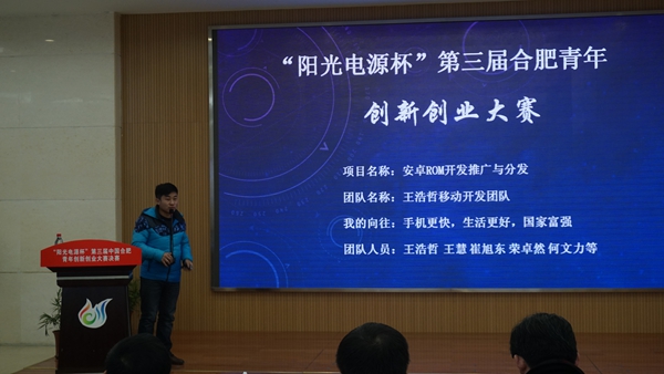 安徽綠海商務職業(yè)學院“王浩哲移動開發(fā)團隊”在之前 合肥市第三屆大學生職業(yè)生涯設計暨創(chuàng)新創(chuàng)業(yè)大賽總決賽中獲得金獎后,作為唯一的高校代表隊,參加了第三屆合肥青年創(chuàng)新創(chuàng)業(yè)大賽決賽,備受投資方及評委關注。