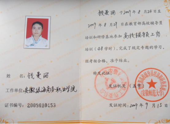 輔導(dǎo)員隊(duì)伍是高校教師隊(duì)伍的一支重要力量,是大學(xué)生健康成長(zhǎng)的指導(dǎo)者和引路人。打造一支政治強(qiáng)、業(yè)務(wù)精、作風(fēng)正、素質(zhì)高、深受大學(xué)生喜愛的輔導(dǎo)員隊(duì)伍,是加強(qiáng)大學(xué)生思想政治教育的重要基礎(chǔ)。自2009年開始我院陸續(xù)派出10余名輔導(dǎo)員參加由安徽省委教育工作委員會(huì)和教育部高校輔導(dǎo)員培訓(xùn)和研修基地(安徽師范大學(xué))共同舉辦的高校輔導(dǎo)員上崗培訓(xùn),全部完成了規(guī)定的專題學(xué)習(xí)并考核合格,順利結(jié)業(yè)。該舉措提高了輔導(dǎo)員隊(duì)伍的專業(yè)化水平,為打造一支專業(yè)化的輔導(dǎo)員隊(duì)伍奠定了基礎(chǔ)。