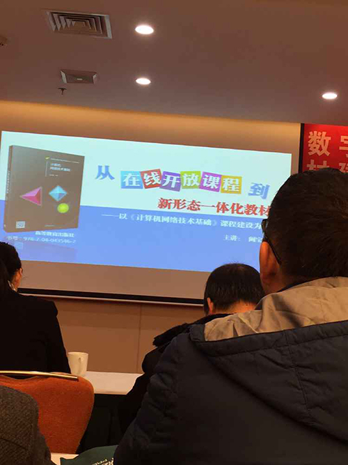 12月4日,徐俊梅,吳藝妮,嚴(yán)玲玲三位同志參加高教出版社主辦的“安徽省高等職業(yè)教育電類/計(jì)算機(jī)類/數(shù)字藝術(shù)設(shè)計(jì)類在線課程建設(shè)與新形態(tài)一體化教材建設(shè)研討會(huì)”,聽取了淮安職業(yè)技術(shù)學(xué)院闞寶鵬老師的微課制作講座,并下載了相關(guān)的素材資料和免費(fèi)獲取了微課在線學(xué)習(xí)的機(jī)會(huì),同時(shí)為系部建設(shè)高教出版社計(jì)算機(jī)類教材展架。