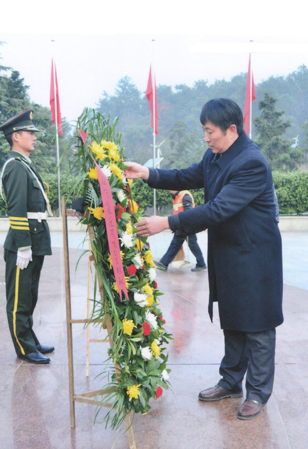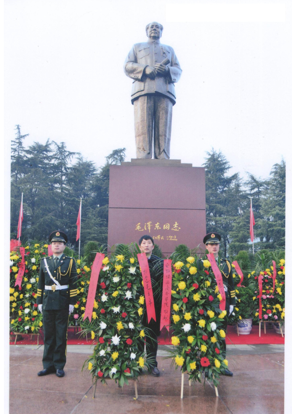 12月25日,陳孝云董事長(zhǎng)在韶山毛澤東銅像廣場(chǎng),代表綠海學(xué)院向毛澤東主席銅像敬獻(xiàn)花籃