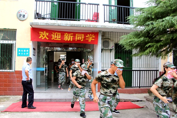下午3時(shí),現(xiàn)場(chǎng)指揮發(fā)出演練開始的指令,隨即9號(hào)宿舍樓冒起濃煙,消防警報(bào)驟響,學(xué)生在輔導(dǎo)員及軍訓(xùn)教官的指導(dǎo)下拿出平時(shí)備用的小毛巾迅速地用礦泉水澆濕并捂住口鼻,有秩序從樓下撤離,并按照預(yù)定的疏散路線迅速撤離到事先指定的地點(diǎn)整隊(duì)。同時(shí),學(xué)院保衛(wèi)、轄區(qū)派出所人員在樓道、樓梯口等處加以指引、疏導(dǎo),防止出現(xiàn)擁擠、踩踏。幾分鐘后,師生全部安全到達(dá)指定疏散點(diǎn)。