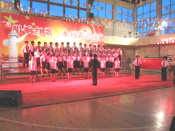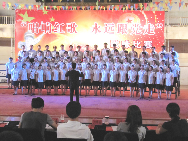 參加此次比賽分教師組和學生組,共12支代表隊。由教師組帶來的《我們走在大路上》拉開大賽序幕,他們隊形整齊,服裝統(tǒng)一,情感飽滿?!陡璩鎳贰ⅰ洞禾斓墓适隆?、《祝福祖國》等表達了老師對祖國的熱愛,唱出了祖國江山的多姿多彩,曲調(diào)積極向上,旋律振奮人心,令人歡欣鼓舞,博得現(xiàn)場觀眾的熱烈掌聲。學生組代表隊《我的心》、《》、《四渡赤水出奇兵》等氣勢豪邁,唱出了熱血青年的豪情壯志,演唱中穿插了領(lǐng)唱、輪唱、助舞等,形式多樣,多姿多彩。最后,在工會代表隊的大合唱《在燦爛的陽光下》節(jié)目后,全體起立,高唱《沒有就沒有新》,以磅礴氣勢和對創(chuàng)建新的感激之情深深感染了每一位觀眾,把比賽晚會推向了高潮。