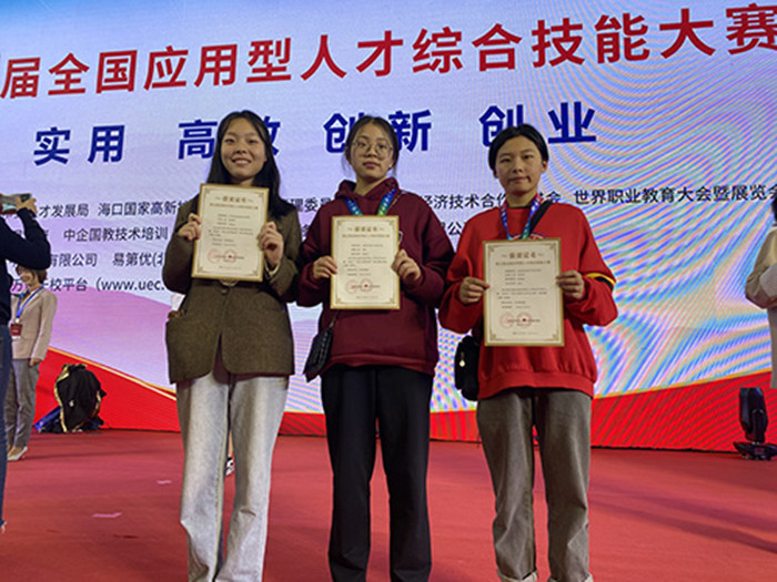 第五屆全國應(yīng)用型人才綜合技能大賽是由國際經(jīng)濟(jì)技術(shù)合作促進(jìn)會、??谑腥嗣裾⑽幕a(chǎn)業(yè)促進(jìn)會、世界職業(yè)教育大會聯(lián)合全國應(yīng)用型人才綜合大賽組委會共同舉辦的級大型賽事。本次大賽有來自全國31個省、自治區(qū)、直轄市的1100余所學(xué)校、15000多支隊伍報名參賽,上百家知名企業(yè)負(fù)責(zé)人參與。經(jīng)過激烈角逐,朱林、趙呈穎同學(xué)獲得“匠心·職場秀”簡歷精英挑戰(zhàn)大賽全國賽項二等獎,王亞茹同學(xué)獲得“奮斗新時代·光山杯”短視頻大賽全國賽項二等獎。