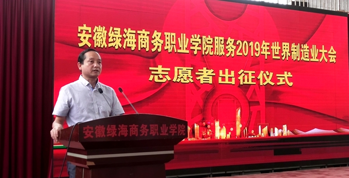 日前,安徽綠海商務(wù)職業(yè)學(xué)院“2019世界制造業(yè)大會”志愿者出征儀式在學(xué)院體育館二樓舉行,學(xué)院黨委副書記、紀委書記張以亭,各系及相關(guān)部門負責(zé)人出席儀式。20多名入選志愿者及學(xué)院全體青年志愿者參加大會。