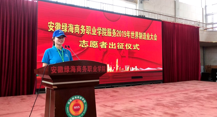 安徽綠海商務(wù)學(xué)院青年志愿者將以最一流的服務(wù)質(zhì)量,最飽滿的精神狀態(tài),在服務(wù)世界制造業(yè)大會中展示新風(fēng)采、傳播正能量,為合肥舉辦一屆成功、精彩、難忘的世界性盛會貢獻青春力量!