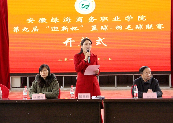 最后,戴昭慰宣布安徽綠海商務職業(yè)學院第九屆籃球、羽毛球聯(lián)賽開幕。