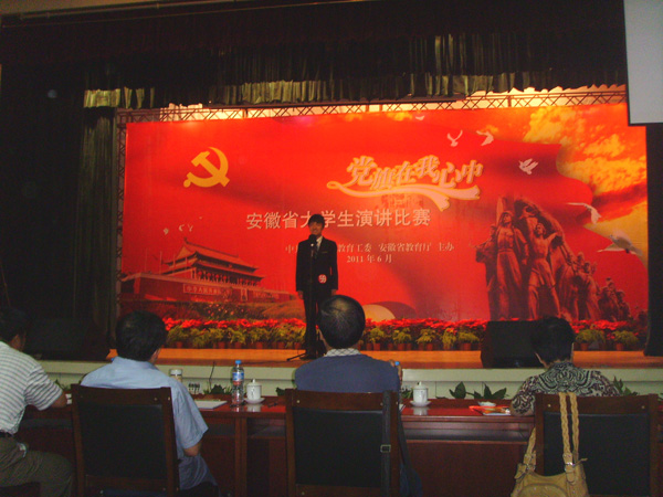 據(jù)了解,為隆重紀(jì)念成立90周年,進(jìn)一步加深高校廣大師生對黨史的認(rèn)識,謳歌黨的豐功偉績,發(fā)揚(yáng)黨的光榮傳統(tǒng),省委教育工委、省教育廳在全省高校大學(xué)生中開展了主題為“黨旗在我心中”的演講比賽。此次比賽分半決賽和決賽,半決賽由皖北、合肥、皖南三個(gè)片區(qū)組成。參加合肥片區(qū)比賽的是來自37所高等院校的74名參賽選手,我院胡菁菁、王雪山同學(xué)表現(xiàn)突出分別以第六名和第八名的優(yōu)異成績晉級八強(qiáng)、挺進(jìn)決賽。另悉,我院是唯一一所選派兩名參賽選手并全部晉級決賽的院校。