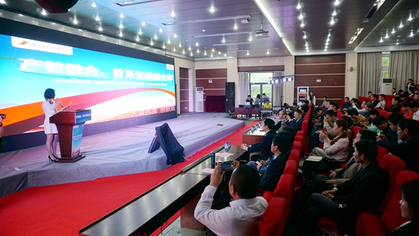 4月16日,由安徽省高等職業(yè)院校(商科)創(chuàng)新創(chuàng)業(yè)聯(lián)盟和新道科技股份有限公司主辦、安徽工商職業(yè)學(xué)院承辦的“產(chǎn)教融合教育發(fā)展新十年——2016年教育新道創(chuàng)新創(chuàng)業(yè)教育與商科實踐教學(xué)”校企對接會在安徽工商職業(yè)學(xué)院拉開帷幕。會議邀請來自院校、企業(yè)代表等七位嘉賓進行了主題演講,并圍繞高校創(chuàng)新創(chuàng)業(yè)教育與商科實踐教學(xué)的教學(xué)模式、理念、成果等時下熱點進行了探討與交流。來自全國本科、高職、中職院校及企業(yè)在內(nèi)的200余人參加了會議。安徽省高等職業(yè)院校(商科)創(chuàng)新創(chuàng)業(yè)聯(lián)盟常務(wù)副理事長、安徽綠海商務(wù)職業(yè)學(xué)院董事長陳孝云在大會上致辭。