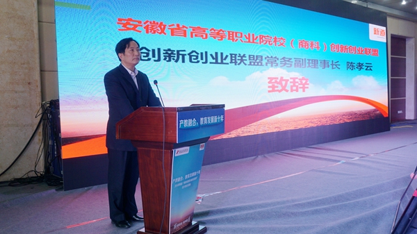 陳孝云代表安徽省高等職業(yè)院校(商科)創(chuàng)新創(chuàng)業(yè)聯(lián)盟對本次大會的舉辦表示祝賀。他指出,新道科技是安徽省高職雙創(chuàng)聯(lián)盟重要的合作伙伴。