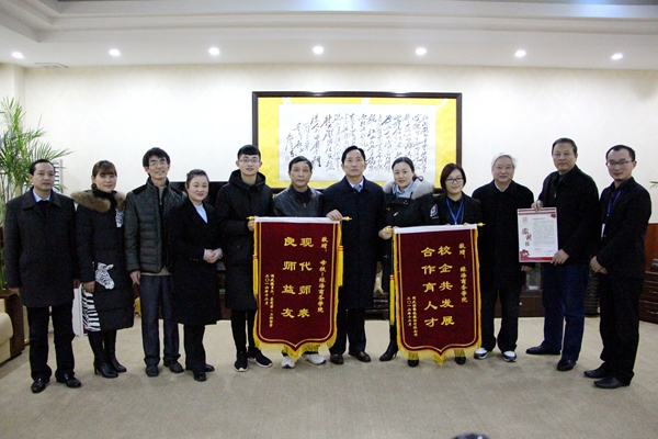 1月5日下午,同慶樓集團(tuán)總經(jīng)理王壽鳳、人力資源部總經(jīng)理王美鳳、院校合作部經(jīng)理桂金一行向?qū)W院贈送“校企共發(fā)展 合作育人才”錦旗。董事長陳孝云、黨委書記江傳瑞、院長許崇正、黨委副書記張以亭、院長助理熊名文,旅游系主任張雪峰、副主任劉婷等接待了王壽鳳一行。