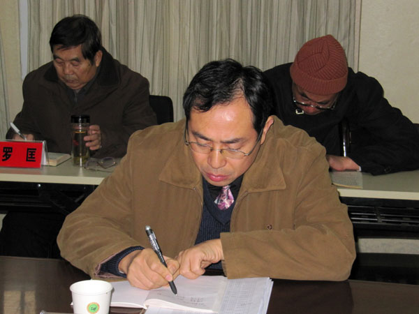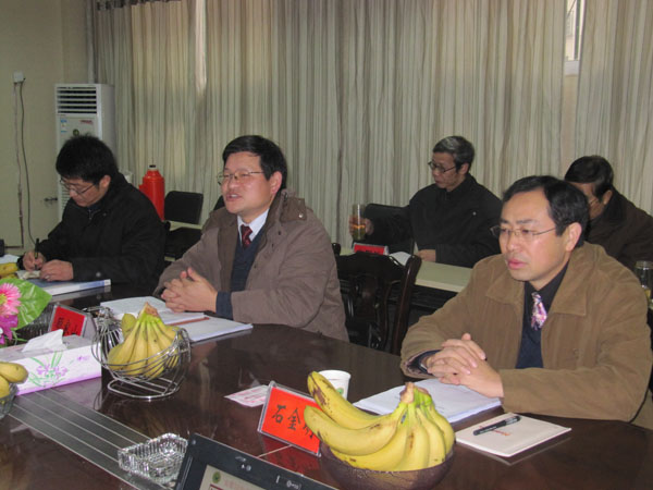 (圖為檢查組領(lǐng)導(dǎo)在會(huì)上聽取我院安全工作匯報(bào))