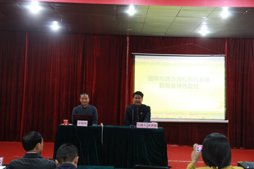 10月10日,知名國學(xué)專家、河南先鋒學(xué)校校長(zhǎng)任曉林在學(xué)院報(bào)告廳作了題為《國學(xué)與民辦高校教育發(fā)展趨勢(shì)及特色定位》專題報(bào)告。香港孔教學(xué)院副院長(zhǎng)、南京誠明書院院長(zhǎng)徐洪磊,南京誠明書院常務(wù)副院長(zhǎng)陳德云一行應(yīng)邀參加綠海大講堂系列活動(dòng)“國學(xué)講堂”報(bào)告。學(xué)院董事長(zhǎng)陳孝云,黨政領(lǐng)導(dǎo)江傳瑞、陳孝江、張以亭、常林虎、孫成玖等出席報(bào)告會(huì),全院科級(jí)以上干部聆聽了報(bào)告。