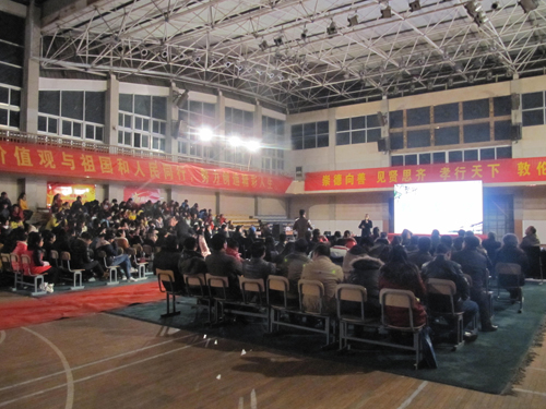 12月18日晚,我院在體育館二樓舉行“弘揚優(yōu)秀傳統(tǒng)文化、踐行當代核心價值觀”——21世紀的人財–六維心態(tài)的主題報告會。香港孔子學院名譽院長徐洪磊及陪同的專家團,學院董事長陳孝云,學院常務副院長丁元生,學院副董事長、副院長陳孝江,副院長張以亭,全院教職工和學生都參加了報告會。本次報告會由副院長張以亭主持。