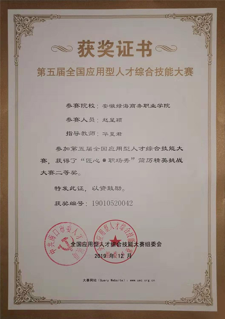 3、2019年12月,電商專業(yè)學(xué)生參加第五屆全國(guó)應(yīng)用型人才綜合技能大賽,獲得短視頻賽項(xiàng)全國(guó)二等獎(jiǎng),獲得個(gè)人綜合技能賽項(xiàng)兩個(gè)二等獎(jiǎng)。