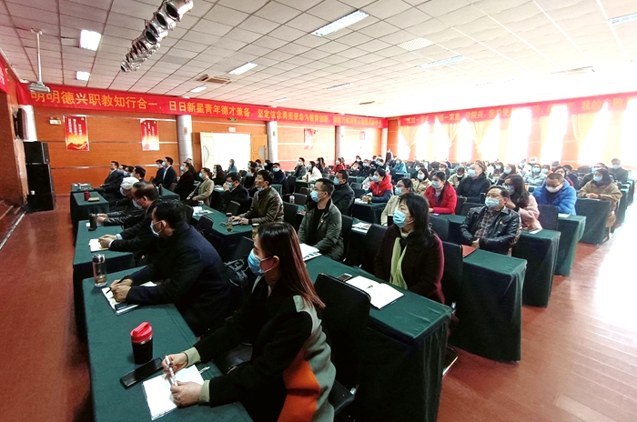 為深入學(xué)習(xí)貫徹習(xí)近平新時代中國特色社會主義思想和黨的十九大精神、習(xí)近平總書記在黨史學(xué)習(xí)教育動員大會的重要講話,堅定綠海人“為黨育人、為國育才”的理想信念,推進(jìn)思政教育工作深入開展,2月23日下午,安徽綠海商務(wù)職業(yè)學(xué)院全體教職員工在董事長、黨委書記陳孝云,督導(dǎo)專員、黨委第一書記江傳瑞等院領(lǐng)導(dǎo)的帶領(lǐng)下,共同觀看學(xué)習(xí)日前央視一套播放的《平“語”近人——習(xí)近平總書記喜歡的典故》第五集“愿得此身長報國”和脫貧攻堅政論專題片《擺脫貧困》。觀影后,陳孝云、江傳瑞分別發(fā)表講話,對學(xué)院全員學(xué)黨史、全員課程思政計劃進(jìn)行全面安排部署。
