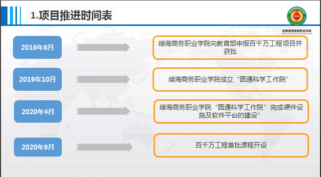 仇冬副院長匯報了教育部學(xué)校規(guī)劃建設(shè)發(fā)展中心百千萬工程項目在安徽綠海的運營情況。2019年6月教育部學(xué)校規(guī)劃建設(shè)發(fā)展中心批準(zhǔn)設(shè)立該項目,同年10月“圓通科學(xué)工作院”成立。在2020年上半年的困難時期,硬件、軟件設(shè)施全部建設(shè)安裝完成,并在9月份開始首批圓通制課程正式授課。各項工作,在學(xué)院各級領(lǐng)導(dǎo)的支持下,一步步順利向前推進。
