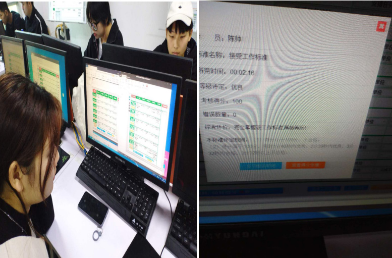以前的實(shí)訓(xùn)課,有的同學(xué)上課不認(rèn)真聽講,敷衍了事。現(xiàn)在通過老師們的嚴(yán)格要求,課堂氛圍已經(jīng)明顯改善,同學(xué)們都能自覺從嚴(yán)要求,珍惜課堂的有限時間,爭先恐后,多練習(xí)、多通過工作標(biāo)準(zhǔn)?!昂细瘛?、“良好”和“優(yōu)秀”、100分,成了大家競相追逐的目標(biāo)。