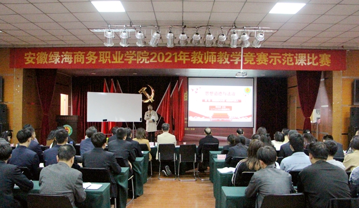 百舸爭(zhēng)流千帆競(jìng),乘風(fēng)破浪正當(dāng)時(shí)。為深入貫徹落實(shí)學(xué)習(xí)習(xí)近平總書(shū)記對(duì)職業(yè)教育的重要指示和全國(guó)職業(yè)教育大會(huì)精神,持續(xù)推動(dòng)教育教學(xué)改革,不斷創(chuàng)新“三教”改革,深入推進(jìn)課程思政建設(shè),切實(shí)提高教師的教學(xué)能力和專業(yè)水平,穩(wěn)步提升學(xué)院教育教學(xué)質(zhì)量,10月22日下午,安徽綠海商務(wù)職業(yè)學(xué)院2021年教師教學(xué)競(jìng)賽示范課比賽在報(bào)告廳成功舉辦。學(xué)院副董事長(zhǎng)、高水平職業(yè)大學(xué)建設(shè)辦公室主任石秀和、執(zhí)行院長(zhǎng)亓四華、文化總監(jiān)張以亭、高水平職業(yè)大學(xué)建設(shè)辦公室副主任史鋒、等院領(lǐng)導(dǎo)及全體無(wú)課教師觀摩比賽現(xiàn)場(chǎng)。史鋒教授、教務(wù)處處長(zhǎng)姚如富、思政部主任喻小紅、工商管理系主任姚云霞、藝術(shù)系常務(wù)副主任王慶茂、信息系副主任吳藝妮、經(jīng)貿(mào)旅游系副主任李英擔(dān)任本次比賽評(píng)委,比賽由教務(wù)處處長(zhǎng)助理李瑋主持。