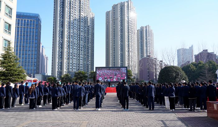 安徽綠海商務(wù)職業(yè)學(xué)院積極響應(yīng)號召,組織學(xué)生在各教室及廣場集中收看網(wǎng)絡(luò)直播,同時按照教育部主會場議程同步開展“憲法跟讀”活動。