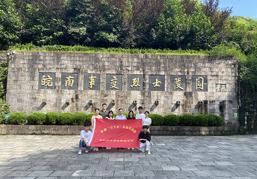 四天里,實(shí)踐團(tuán)一行參觀了新四軍史料陳列館、新四軍軍部舊址、皖南事變烈士陵園和皖南事變陳列館等地,深刻了解了新四軍在抗戰(zhàn)中的奮斗歷史和艱苦奮斗的歷程,切實(shí)感受到革命隊(duì)伍矢志不渝、浴血奮戰(zhàn)的鐵軍精神。“青松埋忠骨,精神育后人”,一座座豐碑、一件件實(shí)物、一段段歷史,讓大家對新四軍的鐵軍精神有了更深刻的認(rèn)識(shí),經(jīng)受了一次深刻的思想洗禮和精神淬煉。在烈士陵園前,全體黨員肅立鞠躬,靜默哀思,表達(dá)對革命先烈們的深切懷念和崇高敬意,感悟革命先輩們無私奉獻(xiàn)的革命精神,不斷賡續(xù)共產(chǎn)黨人的精神血脈;在新四軍軍部舊址,工作人員帶來的專題報(bào)告讓團(tuán)隊(duì)的成員濕潤了眼眶;在皖南事變烈士陵園,實(shí)踐團(tuán)黨員們在實(shí)踐團(tuán)負(fù)責(zé)人團(tuán)委書記朱小明和團(tuán)委副書記方萌萌的帶領(lǐng)下,在黨旗前重溫入黨誓詞;皖南事變陳列館內(nèi),一樁樁震撼心靈的故事,一張張珍貴的圖片,一件件斑駁的遺物,見證了那段艱苦卓絕的不凡歷史,記載了幾十年前血與火的崢嶸歲月,再現(xiàn)了皖南地區(qū)宏偉壯麗的革命戰(zhàn)斗歷史,謳歌了皖南人民英勇奮戰(zhàn)的大無畏精神。