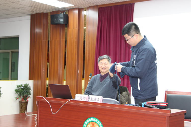 在1個(gè)多小時(shí)的講座中,王海濤老師用詼諧幽默的語言、圖文并茂的課件、生動(dòng)詳實(shí)的案例,圍繞緊急救護(hù)知識(shí)、心理壓力預(yù)防疏導(dǎo)、慢性心血管疾病預(yù)防、職業(yè)病的防治等方面進(jìn)行深入淺出的講解,并就心肺復(fù)蘇、血壓測(cè)量以及常見職業(yè)病的自我糾正、鍛煉方法等進(jìn)行現(xiàn)場(chǎng)示范,不時(shí)與大家互動(dòng)交流。