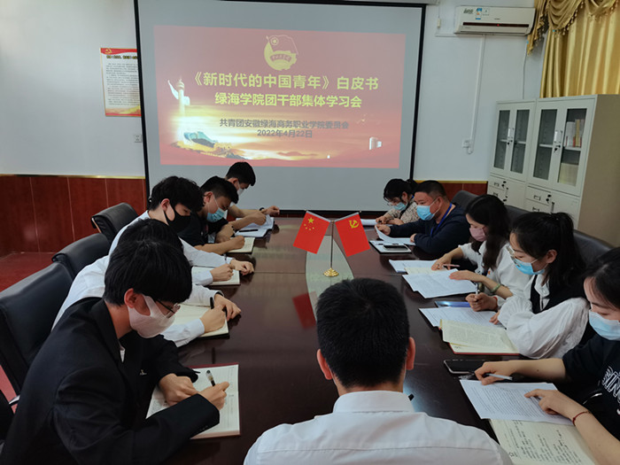 4月21日,國務(wù)院新聞辦公室發(fā)布《新時代的中國青年》白皮書。22日下午,安徽綠海商務(wù)職業(yè)學院團委在黨員活動室舉行《新時代的中國青年》白皮書團干部專題學習會。團委書記方萌萌、各二級學院團總支書記以及學生代表等參加學習會,會議由院團委劉曉雪老師主持。