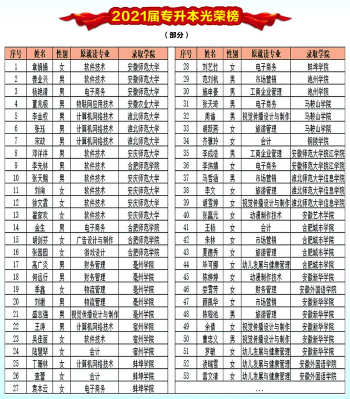 近來年,學(xué)院多措并舉、積極鼓勵(lì)學(xué)生提升學(xué)歷水平,充分調(diào)動(dòng)優(yōu)勢資源,為學(xué)生學(xué)歷提升保駕護(hù)航。學(xué)院每年都有一大批學(xué)生通過“專升本”考入一本二本等本科院校,部分學(xué)子通過繼續(xù)學(xué)習(xí)深造,成功考取碩士研究生。