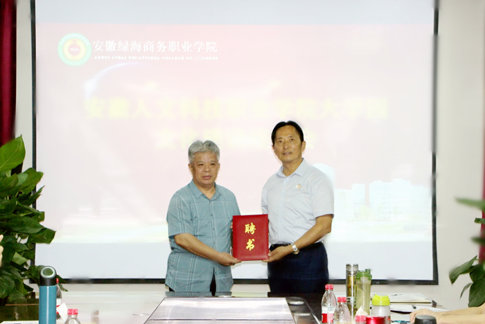 當(dāng)天下午,學(xué)院舉行名譽(yù)院長(zhǎng)聘任儀式。陳孝云董事長(zhǎng)為楊朝明教授頒發(fā)了安徽綠海商務(wù)職業(yè)學(xué)院名譽(yù)院長(zhǎng)聘書。陳孝云董事長(zhǎng)對(duì)楊朝明教授的到來(lái)表示衷心感謝,并從學(xué)院辦學(xué)歷史、辦學(xué)特色、人才培養(yǎng)以及“十四五”規(guī)劃等方面介紹了學(xué)院發(fā)展歷程和所取得成績(jī)。楊朝明教授首先對(duì)學(xué)院的邀請(qǐng)和信任表示感謝,對(duì)學(xué)院辦學(xué)理念、辦學(xué)成果和“星青年”人才培養(yǎng)模式給予高度贊揚(yáng),對(duì)學(xué)院 “十四五”發(fā)展規(guī)劃給予充分肯定,認(rèn)為學(xué)院的“十四五”發(fā)展規(guī)劃科學(xué)合理、思路清晰、目標(biāo)明確,契合學(xué)院發(fā)展實(shí)際,彰顯了學(xué)院辦學(xué)特色,并就學(xué)院“十四五”規(guī)劃中的文化建設(shè)、人才培養(yǎng)、產(chǎn)教融合等方面提出寶貴意見(jiàn)和建議。陳孝云董事長(zhǎng)指出,楊朝明教授是當(dāng)代著名學(xué)者、儒學(xué)家、史學(xué)家,學(xué)術(shù)造詣深厚,社會(huì)影響廣泛,希望楊朝明教授結(jié)合自身的工作實(shí)踐和研究領(lǐng)域,今后在學(xué)院傳統(tǒng)文化建設(shè)、人才培養(yǎng)方面給予更多的指導(dǎo)與幫助,助力學(xué)院高質(zhì)量發(fā)展,提升學(xué)院辦學(xué)水平和人文底蘊(yùn)。