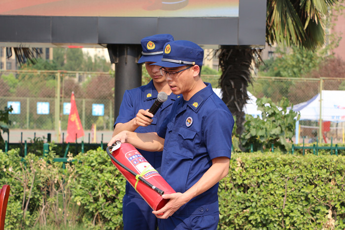 活動中,夏超教官采取面對面講解和現(xiàn)場操作演示的方式,用生動活潑的語言為全體人員介紹了消防法律法規(guī)、常見滅火器材的正確使用、如何撲滅初期火災(zāi)、如何火場自救以及逃生等消防安全常識。結(jié)合近期發(fā)生的幾起影響較大的火災(zāi)事故案例,從防火、滅火、逃生、自救四個方面,分析了火災(zāi)發(fā)生的原因,造成的嚴(yán)重后果以及對社會的危害。現(xiàn)場演示了滅火器功能用途以及操作程序。隨后,夏超教官現(xiàn)場指導(dǎo)學(xué)生代表使用消防設(shè)備設(shè)施進(jìn)行實際操作演練,全體參會領(lǐng)導(dǎo)、師生員工進(jìn)行現(xiàn)場觀摩,通過現(xiàn)場演練使大家對消防工作的重要性有了更深刻認(rèn)識。
