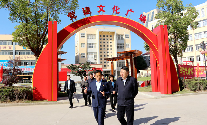 解平副廳長一行首先來到學院黨建文化廣場,對黨建文化廣場建設(shè)給予充分肯定,指出是學院創(chuàng)建“黨建引領(lǐng)示范?!钡膶嶋H舉措,是全面推進“大思政課”建設(shè)的具體實踐。為深入貫徹新時代黨的建設(shè)總要求,安徽綠海商務(wù)職業(yè)學院于今年暑假期間正式啟動黨建文化廣場建設(shè)工作。黨建文化主題廣場的建設(shè),不僅是獨具特色的“紅色地標”,更是重要的思想政治理論課教學實踐基地,是學院深入貫徹落實習近平總書記在學校思政課教師座談會重要講話精神的具體舉措,也是創(chuàng)新大學生思想政治理論課教學內(nèi)容、教學方式的有益嘗試,是思想政治理論課教學第二課堂的重要補充,讓師生群眾精神生活有方向、有動力,增強基層黨組織的凝聚力和戰(zhàn)斗力,為學院實現(xiàn)跨越發(fā)展匯聚正能量,提供新動能。