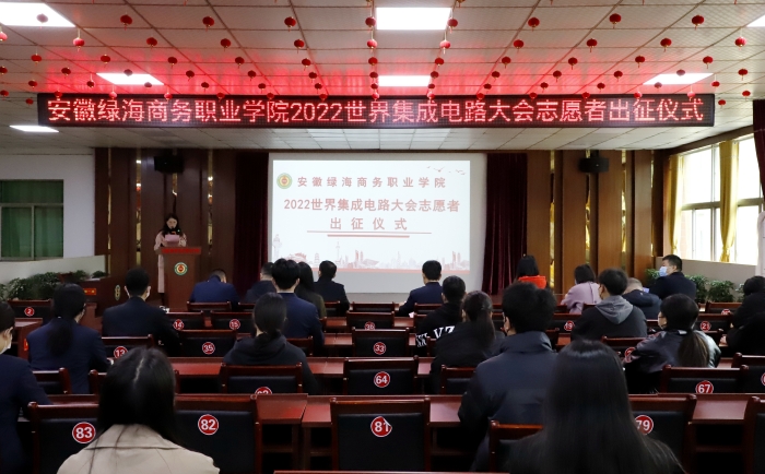 11月14日中午,安徽綠海商務(wù)職業(yè)學(xué)院舉辦2022世界集成電路大會(huì)志愿者出征儀式。學(xué)院董事長(zhǎng)、黨委副書記、星青年首席總培訓(xùn)師陳孝云,常務(wù)及相關(guān)學(xué)管干部出席活動(dòng)。出征儀式由團(tuán)委書記方萌萌主持。