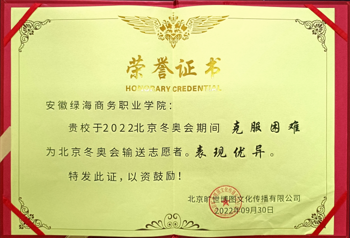 近日,安徽綠海商務(wù)職業(yè)學(xué)院團(tuán)委辦公室,收到一封特殊的來信,隨信一起的,是一張來自冬奧會(huì)的相關(guān)組織單位對(duì)綠海星青年金牌志愿服務(wù)團(tuán)的褒獎(jiǎng)證書和一批綠海學(xué)子榮譽(yù)證書。