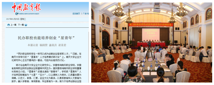 2017年1月26日,《中國(guó)教育報(bào)》以“民辦職校也能培養(yǎng)創(chuàng)業(yè)‘星青年’”為題,報(bào)道了綠海學(xué)院獨(dú)創(chuàng)的“星青年人才培養(yǎng)模式”,此后這一人才培養(yǎng)模式又獲得2018年“安徽省教學(xué)成果二等獎(jiǎng)”?!皢柷堑们迦缭S,為有源頭活水來”,星青年的星火閃耀,只是“星青年人才培養(yǎng)模式”成功育人的一個(gè)縮影,從中折射出的是綠海“星青年”的品質(zhì)、能力和素養(yǎng),閃耀著因材施教、琢玉成器的智慧光芒。