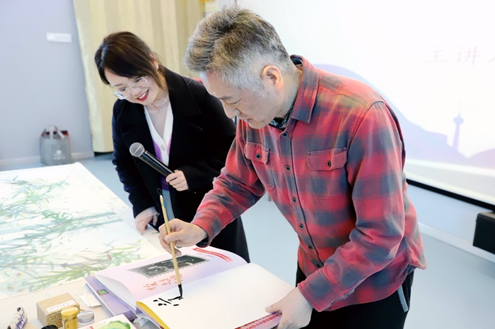 2月27日下午,知名畫家、書法家、詩人韋藝和老師蒞臨安徽綠海商務(wù)職業(yè)學(xué)院,在智慧思政教室與師生代表分享了其藝術(shù)人生的感悟。安徽文學(xué)藝術(shù)院院長戴瑞,安徽省當(dāng)代社會主義核心價值體系研究中心主任、學(xué)院董事長、星青年文化研究院院長陳孝云,執(zhí)行校長許信旺,常務(wù)副校長常務(wù)副院長到場聆聽。講座由董辦副主任、宣傳部副部長吳珉主持。
