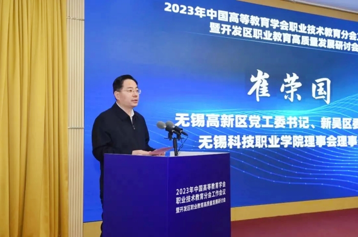 本次會(huì)議由中國高等教育學(xué)會(huì)職業(yè)技術(shù)教育分會(huì)主辦,無錫科技職業(yè)學(xué)院承辦。政行企校各界人士齊聚一堂,聚焦深化現(xiàn)代職業(yè)教育體系建設(shè)改革,共商職教發(fā)展、共話職教未來,共同探討開發(fā)區(qū)職業(yè)教育高質(zhì)量發(fā)展之路。全國知名職教專家學(xué)者、職業(yè)院校負(fù)責(zé)人、主流媒體代表、企業(yè)代表,及無錫科技職業(yè)學(xué)院干部教師代表等400余人參加會(huì)議。