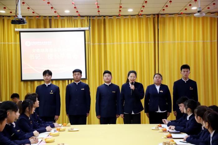 4月19日清晨6:30,學院“書記校長早餐會”在食堂三樓星青年餐廳舉行。安徽當代社會主義核心價值體系研究中心主任、綠海學院董事長、星青年文化研究院院長陳孝云與22名學生助理、各二級學院團支部書記齊聚共早餐、拉家常、話成長。學生處、董辦、宣傳部、總務處等相關部門人員共同參與。