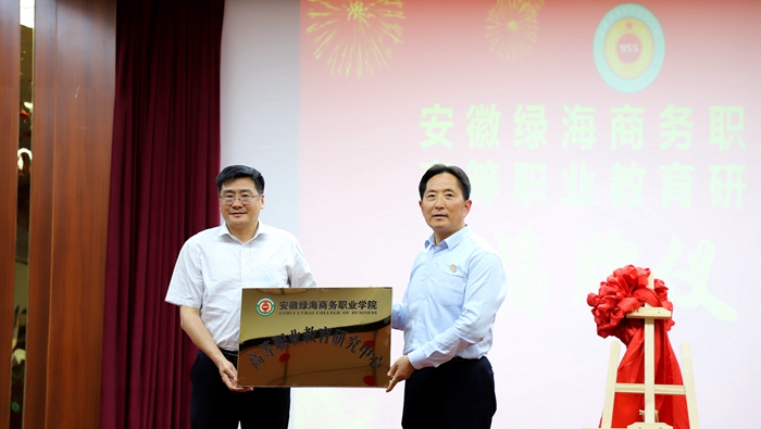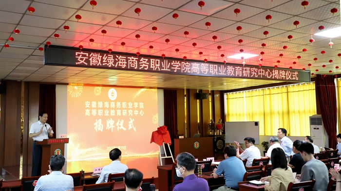 報(bào)告開(kāi)始前,安徽當(dāng)代社會(huì)主義核心價(jià)值體系研究中心主任、綠海學(xué)院董事長(zhǎng)、星青年文化研究院院長(zhǎng)陳孝云和周建松共同為安徽綠海商務(wù)職業(yè)學(xué)院高等職業(yè)教育研究中心揭牌,陳孝云為許信旺授牌。據(jù)了解,中心的成立將進(jìn)一步加強(qiáng)學(xué)校對(duì)職業(yè)教育發(fā)展形勢(shì)的研究,充分發(fā)揮好平臺(tái)作用,創(chuàng)新高等職業(yè)教育人才培養(yǎng)模式,激活內(nèi)涵發(fā)展新動(dòng)力,為學(xué)校高質(zhì)量發(fā)展提供有力支撐。