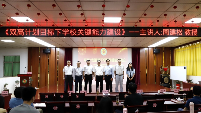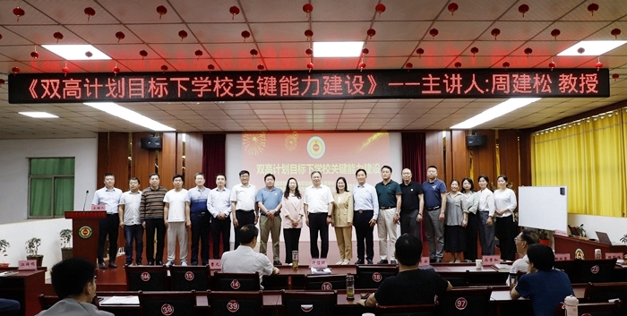中國(guó)高等教育學(xué)會(huì)職業(yè)技術(shù)教育分會(huì)會(huì)長(zhǎng)、知名職教專(zhuān)家周建松教授為綠海學(xué)院高等職業(yè)教育研究中心揭牌并作《雙高目標(biāo)下的關(guān)鍵能力建設(shè)》專(zhuān)題報(bào)告