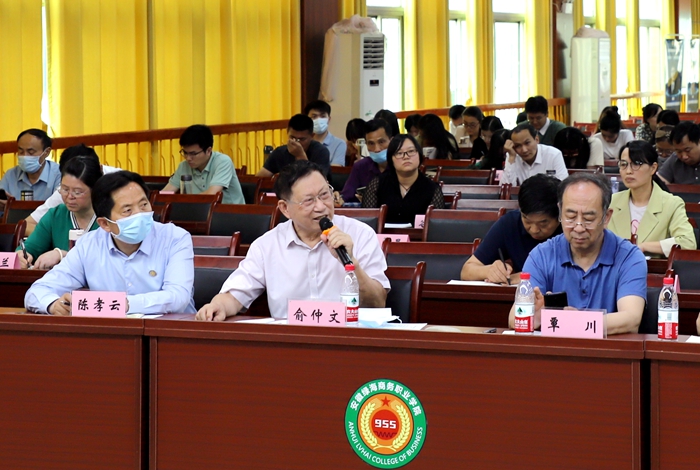 高水平大學建設(shè)診斷與指導會上,教務(wù)處處長吳玉教授代表學校匯報了《安徽綠海商務(wù)職業(yè)學院高水平大學建設(shè)情況》。吳玉從高水平專業(yè)群申報情況、高水平大學達成度分析、建設(shè)中的難點痛點堵點三個方面對學校高水平大學的建設(shè)基礎(chǔ)、建設(shè)目標、進展成果、存在問題進行了詳細介紹。覃川教授重點對學校高水平大學建設(shè)的問題及解決難點進行了深入分析,提出了相關(guān)問題的解決思路和建議。與會二級學院、部門負責人圍繞目前存在的困難與問題進行了發(fā)言提問,覃川教授進行了一一解答。