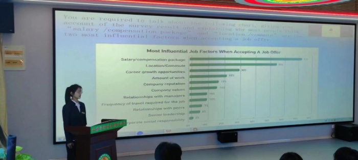 本次活動,主要分為兩輪。第一輪為“現(xiàn)場描述”,大賽舉辦方給出一個圖表,讓選手自行準備2~4分鐘演講。第二輪為“回答問題”。首先大賽舉辦方準備好五篇海報,并編上序號,讓選手抽簽出一個序號即相對應的一篇海報。選手看完海報后,評委老師將圍繞海報內(nèi)容進行提問。在這場比賽中,第一輪主要比的是選手們的口語能力,而第二輪的比賽,更考驗選手的綜合實力。如果第一輪為“比賽”,那么第二輪應該是一場真正的“較量”!