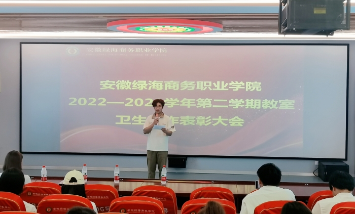 為扎實(shí)開(kāi)展“三堂建設(shè)”,促進(jìn)校園衛(wèi)生管理,營(yíng)造文明和諧、干凈整潔的教室衛(wèi)生環(huán)境,6月19日下午,學(xué)生處在智慧思政教室舉行學(xué)校2022-2023學(xué)年第二學(xué)期教室衛(wèi)生表彰大會(huì)。各二級(jí)學(xué)院輔導(dǎo)員代表、大一各班級(jí)生活委員、部分學(xué)生代表參加,表彰大會(huì)由工商管理學(xué)院梁偉晨、張喜悅兩位同學(xué)主持。