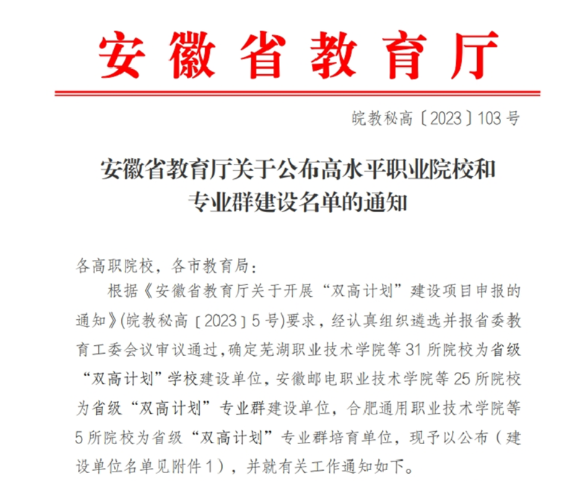 熱烈祝賀安徽綠海商務(wù)職業(yè)學(xué)院成功入選安徽省高水平專業(yè)群建設(shè)單位