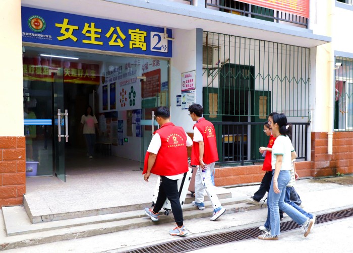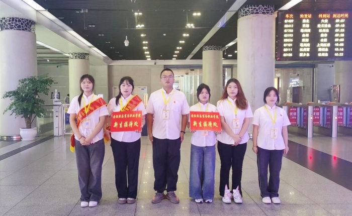 伴隨著合肥的第一縷陽(yáng)光,志愿者們?cè)缭绲仂o候在各大車站站點(diǎn),接站工作有序展開(kāi)。統(tǒng)一的志愿服、 紅色接站牌,指引并陪同新生及家人坐上“點(diǎn)對(duì)點(diǎn)”的專車安全抵校。讓萌新們?cè)谀吧乃l(xiāng)顯得格外親切,開(kāi)啟萌新們的人生新篇章。