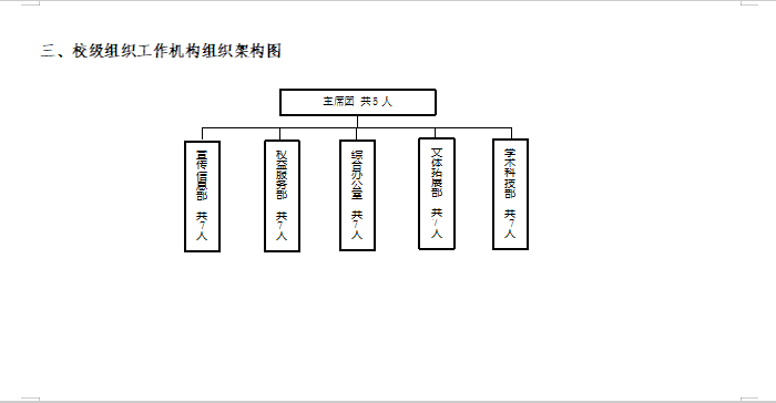 第十六條 院學(xué)生會(huì)設(shè)以下職能機(jī)構(gòu):綜合辦公室、媒體宣傳部、權(quán)益服務(wù)部、文體拓展部、實(shí)踐創(chuàng)新部。各職能部門設(shè)部長(zhǎng)1名,副部長(zhǎng)1-2名,干事不超過6名。