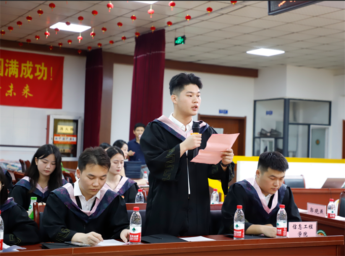 座談會在一片和諧、輕松的氛圍中開始。信息工程學院的解奧齊同學首先代表全體畢業(yè)生發(fā)言,他回望了在綠海學院的求學時光,總結(jié)了三年的學習收獲和感悟,表達了對母校和老師辛勤培養(yǎng)的感激之情和美好祝福。他鼓勵同學們要志存高遠、腳踏實地,不畏艱難險阻,擔負起星青年學子的責任和使命,為建設“大美安徽”做出貢獻,為母校爭光添彩。