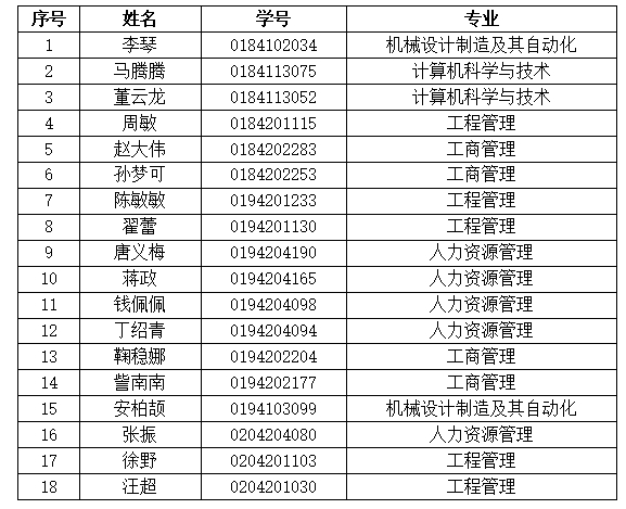 根據(jù)安徽工程大學(xué)繼續(xù)教育學(xué)院印發(fā)的繼教字【2022】1號文《安徽工程大學(xué)高等學(xué)歷繼續(xù)教育學(xué)生管理規(guī)定》第三章第八節(jié)第四十三條,即“學(xué)生有下列情況之一者,應(yīng)予退學(xué):在學(xué)校規(guī)定最長修業(yè)年限內(nèi)(學(xué)制加兩年,含休學(xué))未完成學(xué)業(yè)的”的規(guī)定,決定給予李琴等18名學(xué)生退學(xué)處理,具體名單如下所示。