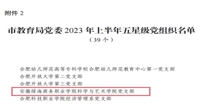 一是牢牢把握黨對學校工作全面領導的根本要求,強化政治建設、組織建設,創(chuàng)新理論武裝,培育創(chuàng)建“黨建引領示范?!?,對標爭先創(chuàng)優(yōu),推動學校黨組織“爭星晉級”,創(chuàng)新高。2023年上半年,科學與藝術(shù)學院黨支部被評定為“五星級黨組織”,工商管理學院等4個黨支部被評定為“四星級黨組織”,其中科學與藝術(shù)學院正積極申報全國高校黨建“標桿院系”,綠海學院黨建品牌創(chuàng)建獲得新突破。