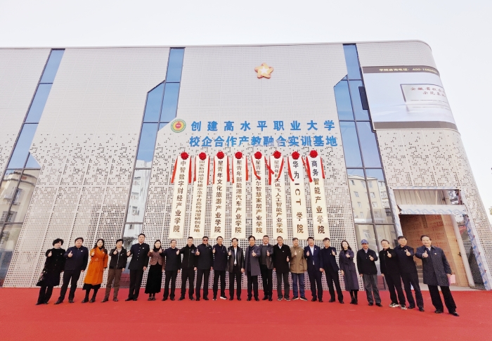 隨后,校領(lǐng)導(dǎo)與各二級(jí)學(xué)院院長分別為數(shù)字商貿(mào)與直播學(xué)院、創(chuàng)建高水平職業(yè)大學(xué)校企合作產(chǎn)教融合實(shí)訓(xùn)基地的“中智數(shù)字財(cái)經(jīng)產(chǎn)業(yè)學(xué)院、國家新聞動(dòng)漫傳播示范平臺(tái)高校動(dòng)漫研創(chuàng)基地、星青年文化旅游產(chǎn)業(yè)學(xué)院、星青年新能源汽車產(chǎn)業(yè)學(xué)院、星青年海爾智慧家居產(chǎn)業(yè)學(xué)院、星青年科大訊飛人工智能產(chǎn)業(yè)學(xué)院、華為ICT學(xué)院、商務(wù)智能產(chǎn)業(yè)學(xué)院”揭牌。