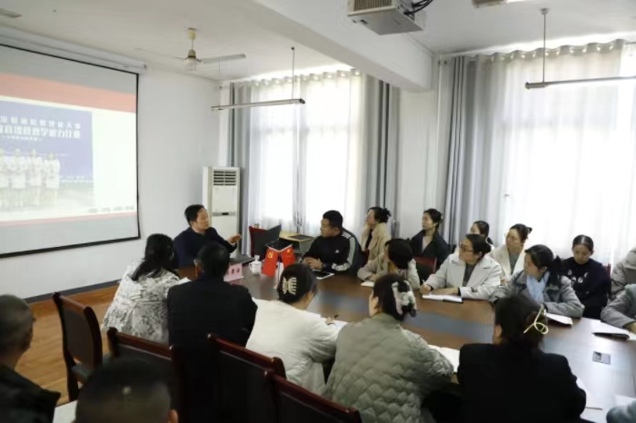 陳孝云作了《學(xué)習(xí)貫徹習(xí)近平總書記關(guān)于教育重要論述,奮力推進學(xué)校高質(zhì)量發(fā)展》的主題教育專題黨課。他結(jié)合前期理論學(xué)習(xí)、調(diào)查研究、整治整改等相關(guān)情況,從堅持黨建引領(lǐng),落實立德樹人辦學(xué)宗旨;堅持守正創(chuàng)新,全面推動教育教學(xué)改革;堅持開放提升,增強學(xué)校社會服務(wù)能力;堅持擔(dān)當(dāng)實干,匯聚學(xué)校發(fā)展強大動力等五個方面,細致深入地解讀了習(xí)近平總書記關(guān)于教育重要論述的重大意義。陳孝云指出,要緊緊錨定主題教育的目標(biāo)任務(wù),以學(xué)鑄魂、以學(xué)增智、以學(xué)正風(fēng)、以學(xué)促干,堅持目標(biāo)導(dǎo)向和問題導(dǎo)向相統(tǒng)一,做到凝心鑄魂筑牢根本、錘煉品格強化忠誠、實干擔(dān)當(dāng)促進發(fā)展。要結(jié)合自身實際,突出圍繞中心、服務(wù)大局,堅持以人民為中心發(fā)展教育,持續(xù)推進教育系統(tǒng)全面從嚴(yán)治黨,確保黨中央要求全面準(zhǔn)確落實到位。他強調(diào),學(xué)校要堅持用習(xí)近平新時代中國特色社會主義思想凝心鑄魂,牢牢把握“六個必須堅持”,把這一重要思想變成改造主觀世界和客觀世界的強大思想武器,運用到貫徹落實黨的二十大提出的重大戰(zhàn)略部署中去,不斷推動學(xué)校事業(yè)高質(zhì)量發(fā)展。